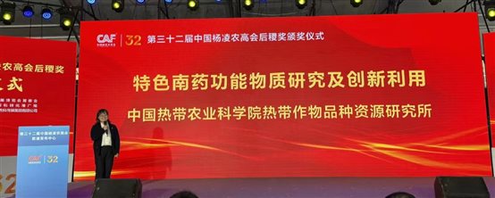 此次展会,我所荣获两个后稷特别奖和一个后稷奖,分别是特色南药功能物质研究及创新利用、儋州(盐焗)鸡、百香果脱毒种苗工厂化繁育与推广应用。另,我所南药专家王茂媛教授受组委会邀请,参加了路演发布会,并做了特色南药功能物质研究及创新利用的报告。
